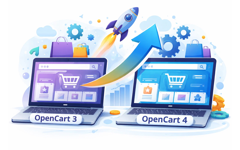 Srovnání OpenCart 3 a OpenCart 4 se zaměřením na praktické rozdíly pro provoz e-shopu. Článek vysvětluje, co přináší řada 4.1 (včetně návratu OCMOD), jaké má technické požadavky (PHP 8.1+) a v jakých situacích se migrace skutečně vyplatí.